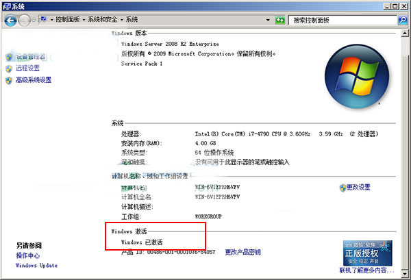 18、重启系统后,可以看到windows server 2008 r2已经成功激活,现在用户可以免费使用。