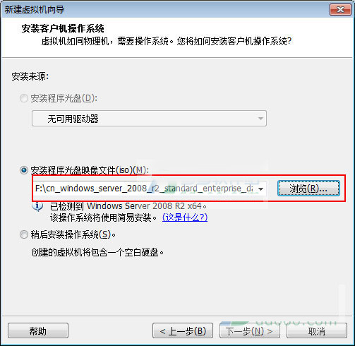 5、点击浏览按纽,找到你下载好的iso安装文件;