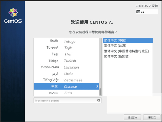 3、接下来我们进入图形化安装界面,选择语言,点击继续