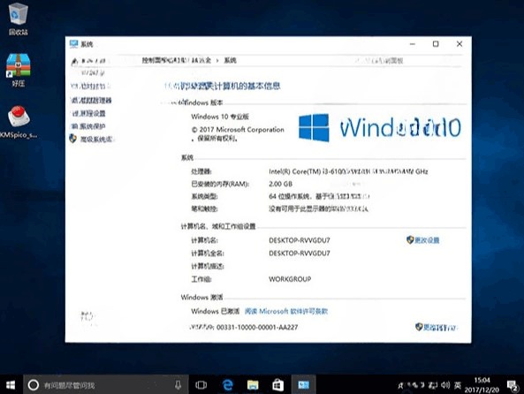 9、进入系统后我们可以看到系统是win10专业版,但并未激活。