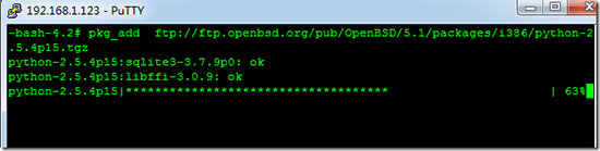 package是预编译的二进制包,不同于ports源码安装,事实上,ports安装方式也会打包一个package二进制文件,你完全可以将此二进制文件拷贝到别的地方安装,openbsd默认没有安装python,现在采用package安装python2.5.4,采用package安装方式也会将依赖的软件和库一并装上。