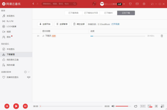 7、此时,listen1 想要的歌曲便会自动下载,我们还可以实时看到它的下载进度。