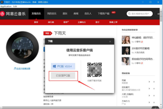 5、此时,会弹出如下图窗口,因为我们事先安装了网易云音乐,所以这里,点击“已安装PC版”按钮。