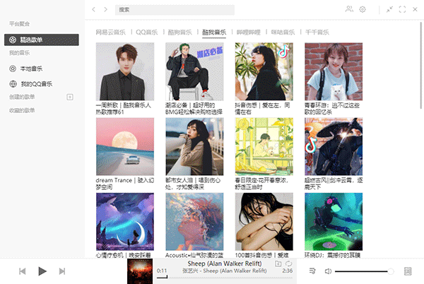 5、快速搜索功能,在软件中,会自动更新其他音乐播放站的歌曲,可以搜索最新的歌曲欣赏