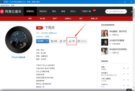 4、接下来,listen1 会自动弹出该歌曲所属的网易云音乐详情,我们从该详情页面中点击“下载”按钮。