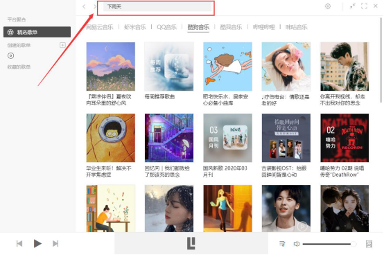 2、然后,进入 listen1 软件。在界面顶部的搜索框中输入自己想要下载的歌曲的名字,再按一下回车键。