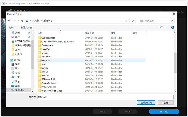 3、浏览选择Adobe After Effects版本想要安装element 3d位置;
