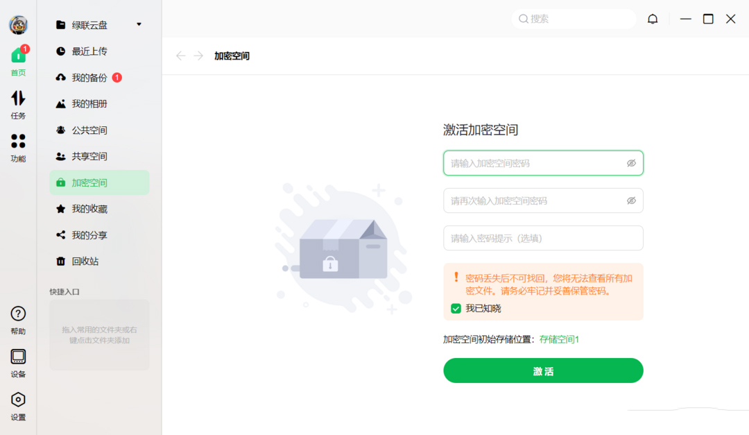 可以将重要的保密数据放入加密空间,设置一个单独的密码管理,但是密码一旦丢失文件无法恢复。