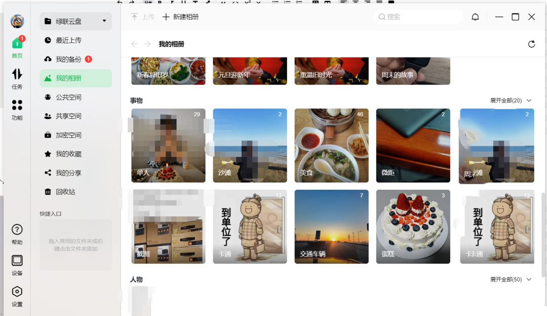 在手机中备份的照片可以用APP管理,会自动识别事物类型并且分类整理,当然也支持人脸识别,识别速度和准确率都非常不错。