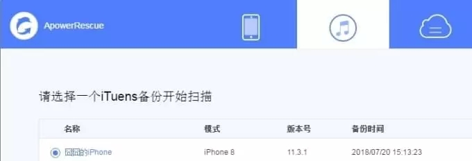 2、点击“开始扫描”按钮,静待几分钟ApowerRescue扫描iTunes备份。
