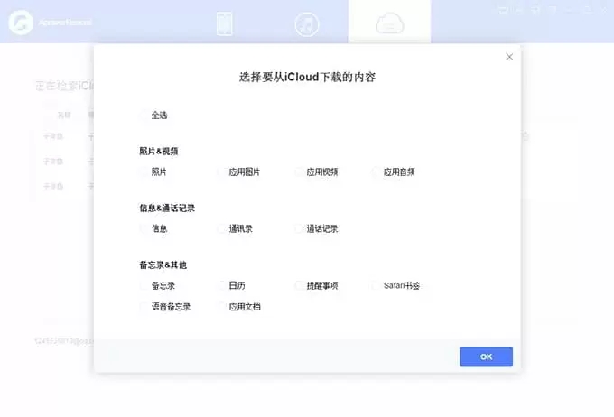 5、静待ApowerRescue 扫描iCloud备份。