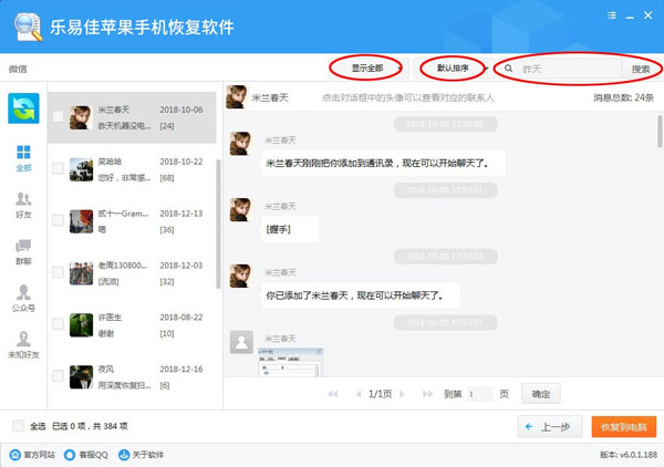 2、操作简易:极速恢复短信、联系人、图片、微信等各类iOS数据