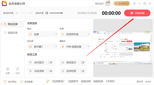 金舟录屏大师是一款支持多种视频格式、多种画质可选、多种高清录制模式的录屏软件,支持4大模式高清录制,支持全屏、区域选择、电脑摄像头、分屏等各类屏幕画面录制及录音,同时还支持Mp4、Wav、Webm、Mkv、Mpeg、M4v等多种视频格式,能够为你提供高清流畅的录制体验,让电脑录像录屏更轻松。