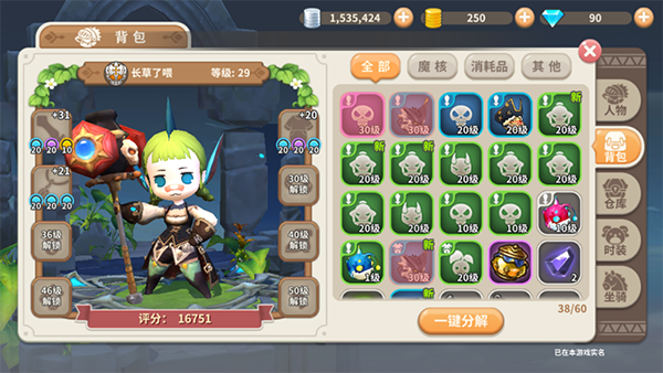 踏上卢米娅大陆一切都是全新的开始,一身强力的装备将是你旅途上最忠实的伙伴。随着萌主等级提升,当达到指定等级时,背包中对应的装备栏位同步解锁。每个栏位中可佩带最多3个魔核,提供属性加成,武器和衣装的魔核还提供外观哦~。