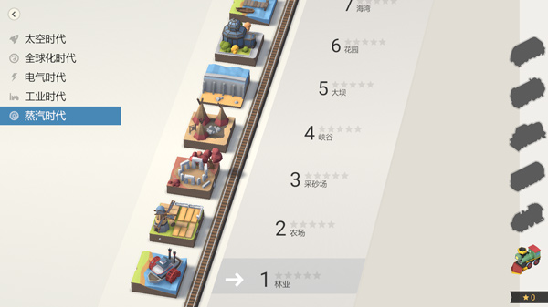 推动我国火车大亨管理难题的产业革命。建造一条高效的铁路,升级你的机车,并在不延误的情况下保持火车的轨道,以满足你的小城市和工业不断增长的需求。