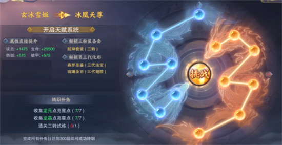 凌霄达到150级后,便会开启一转任务。一转任务总共有3个阶段,根据任务提示完成3阶段的任务后,可成功转职。