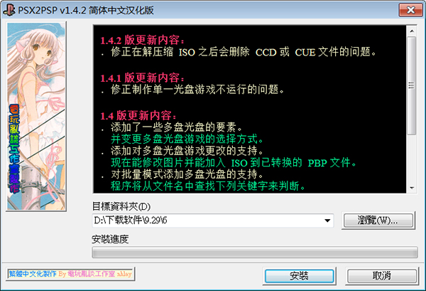 PSX2PSP简体中文汉化版是一款可以把PS游戏的ISO转换成PSP的压缩工具,通过它用户可以把电脑上使用的ps游戏rom的IMG、iso等游戏格式转换为psp专用的php格式,以及把PS游戏转换成PSP可用的格式。除此之外,用户还可以根据自己的习惯、爱好设计喜欢的图标、背景、信息、开机警告图像以及背景音乐与图标动画,喜欢的用户可以在本站免费下载使用。
