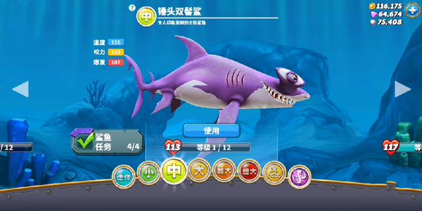 第二大双髻鲨,游戏中最强的中型鲨鱼,能力算是均衡型