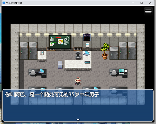 进入游戏后开始你的失业模拟吧,你将扮演一位名叫阿巴的35岁中年男子