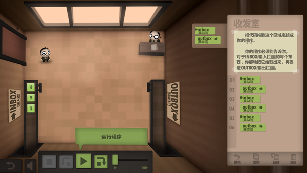 人力资源机器中文版是一款为技术宅制作的编程益智游戏,英文名叫Human Resource Machine,也叫程序员升职记,该游戏围绕着程序员的日常工作所展开,玩家需通过上级交付的任务和当前所遇到的问题进行解答、完成任务,匠心独制的高清画风,精美细腻的UI界面布局,独特的程序代码模块,形形色色的问题及解决方法,辅以丰富多趣的关卡挑战和便捷简单的操作玩法,致力于带给你更加别致一新的游戏体验。
