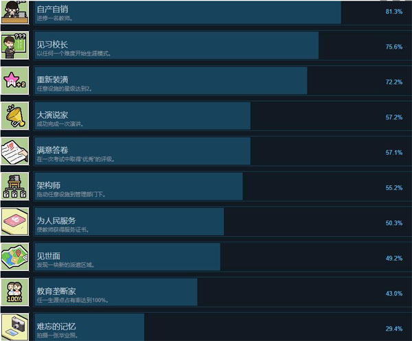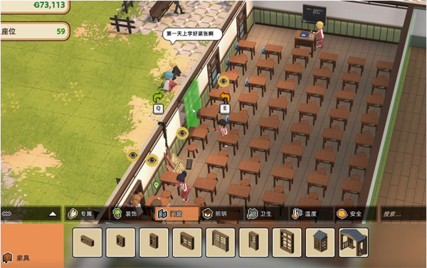 玩家在游戏中的各种选择,都会在游戏内有实际的反馈。比如如果厕所不够,学生会焦躁不安,甚至出现随地大小便等影响环境卫生的行为;食堂不够,学生们会喊饿,满意度会下降,但食堂太大食物太多,而学生们则可能会长胖;课程设置太紧密,学习压力大,学生们就会开始戴眼镜之类的。