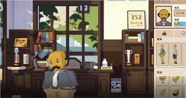 游戏人物的画风略显幽默,特别是在游戏界面开始创建校长的时候,可以根据自己的想法设计自己想要的校长的模样,可以设置身高、体重以及发型等等。