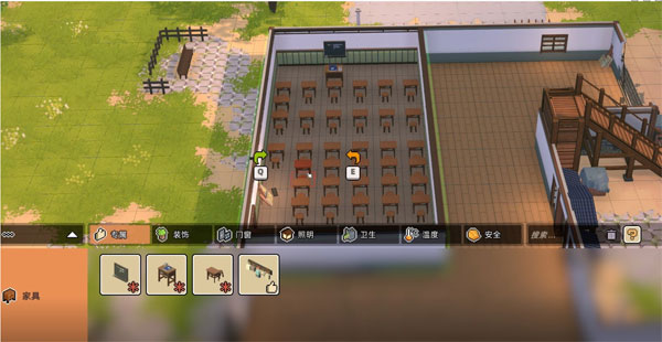 几个等级的课桌之间唯一有区别的是课室容纳学生的数量。我比较喜欢空一行出来,保持美观和代入感。至于课桌如何安排就完全看个人喜好,我这里贪方便就演示了一个24人容量的。