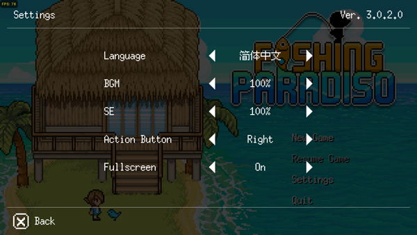 1、在本站下载解压,双击Fishing Paradiso.exe启动游戏;