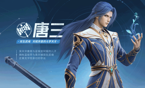 昊天宗唐昊与蓝银皇阿银的儿子,拥有蓝银草与昊天锤双生武魂,史莱克学院亲切的学长