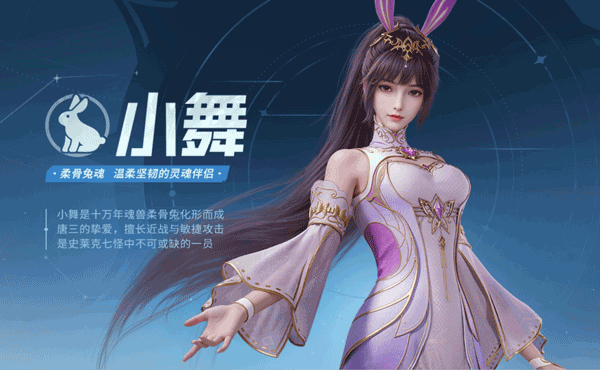 十万年魂兽柔骨兔化形而成,唐三的挚爱,擅长近战与敏捷攻击,是史莱克七怪中不可或缺的一员