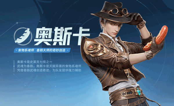 史莱克七怪之一,武魂为香肠,奥斯卡是天赋异禀的食物系魂师,凭借香肠武魂创造奇迹,为队友提供强力辅助