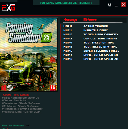 模拟农场25是一款非常好玩的模拟游戏,现邀请你加入回报丰厚的农场生活,无论你是独自游戏,还是多人合作,你都将打造属于你的农场。游戏可玩度高,但是上手难度较大,为此小编今天为大家带来了模拟农场25修改器,拥有包括无限金钱、工具超大容量、车辆零重量、加速时间、冻结时间、超级方向盘等8项修改功能,帮助玩家轻松应付农场经营中可能面对的各种问题,定制想要的玩法。不过小编建议玩家适当的修改可以让游戏更有乐趣,快免费下载体验吧。