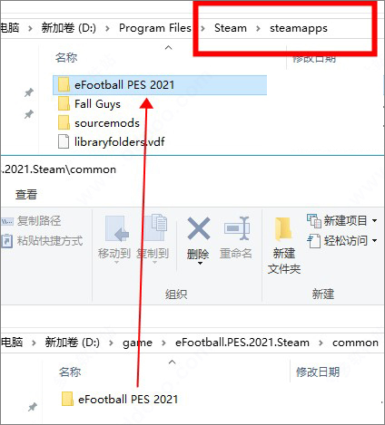 2、将eFootball PES 2021文件夹复制到,Steam\SteamApps目录中;