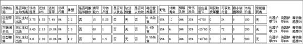 2、这是所有可以搬运并且能够主动出击战斗的动物。(巨懒被我分到这一栏里了,巨懒能产毛)