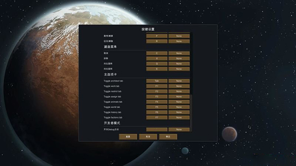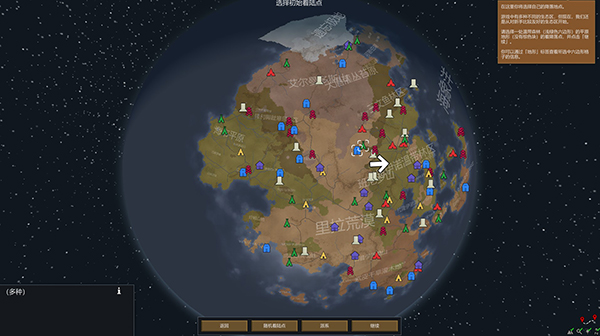 殖民地目前只能建立在陆地上,且不能建立在“不可逾越”的地形(有mod可以强制建立),总体降雨量和总体温度一个决定雨雪天气的频率,一个决定这个世界(冰原、冰盖面积/沙漠、极端沙漠面积)的比值,人口密度则是1.1版本新增的设定。