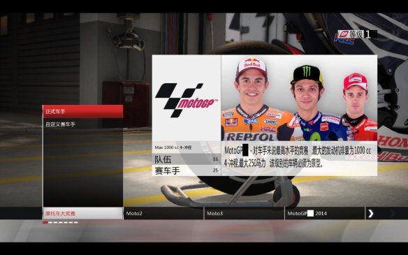 2、大奖赛:从摩托车大奖赛中选择一场大奖赛进行游戏的尝试。