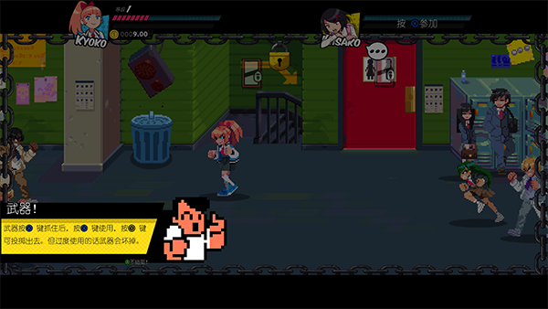 2、武器与道具:游戏中有大量可拾取的武器(如垃圾桶、鱼竿等),但需注意耐久度和反作用效果(如反弹伤害)。