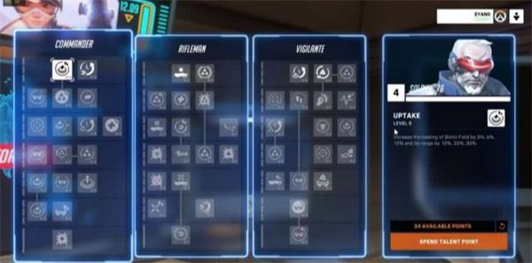 不同的角色有不同的天赋系统,玩家可在天赋树中为角色点出各种新技能。例如小美可变成雪球、士兵76可将周围的敌人推开、 天使可群体复活等。