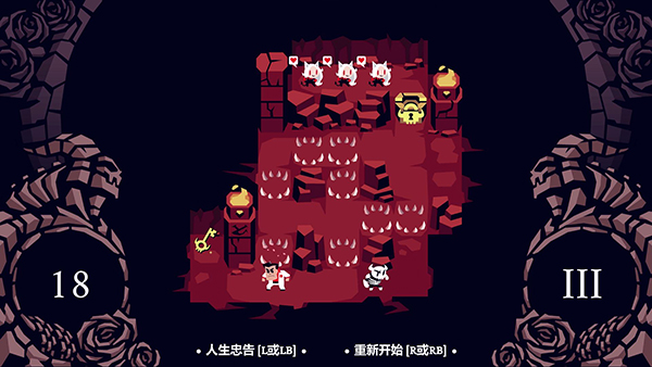 地狱把妹王是由Helltaker Maker制作并发行的一款俯视视角的动作冒险游戏,它的玩法与经典游戏推箱子类似,玩家在游戏中可以操控角色在绝望的地狱中冒险,赢得地狱少女的心,并且该作的画风采取诡异的怪物手绘,给玩家一种鲜明的真实地狱感。另外,游戏的主题虽然是解救恶魔女孩,但是恶魔女孩有时会却会将你杀死,因此玩家要根据npc给予的信息自主选择游戏的通关方式。除此之外,该作虽然在关卡上只有10关,但是其实游戏中隐藏了非常多的彩蛋和关卡,这些隐藏关卡使得该游戏的可玩度又上升了一个层次。值得一提的是,地狱把妹王还包含了养成玩法,每一位被你解救的恶魔女孩都可以被纳入后宫。