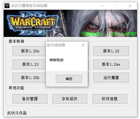 1、该工具实现魔兽争霸1.20至1.24e的六个版本的转换