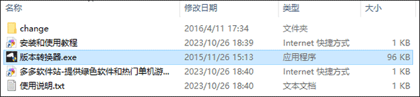 1、解压下载的压缩包,找到“change”文件夹和“版本转换器.exe”。