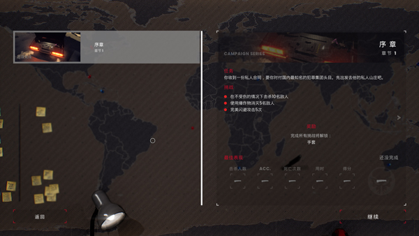 4、安装完成后,在桌面双击Suit for Hire即可启动游戏,点击进行游戏,选择章节关卡;