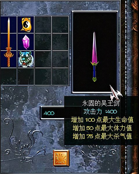 绝世龙泉剑,紫水晶,太极符,白虎之魂等于永恒的吴王剑。就像真空枪一样,有模仿的效果。