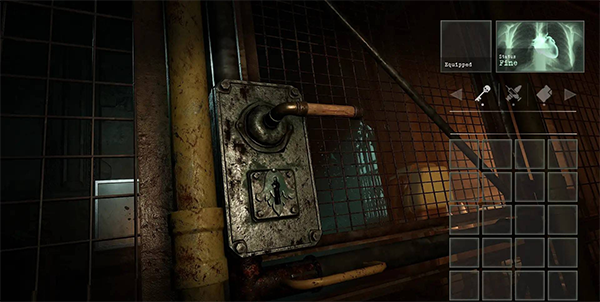 在医务室拾取【圣经】(担架旁边)和【图钉】(木板上)。检查【圣经】并将【图钉】组合在耶稣左手上,打开书册获得花蕾钥匙。使用花蕾钥匙打开上锁的大门。