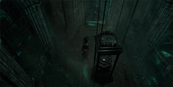 1、获得锤子后,返回钟楼并一路向上。用锤子砸碎挡路的罐子到达顶层。到达顶层后,按照以下顺序用锤子敲击钟,击碎区域中央的玻璃罩。