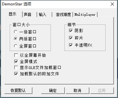 该版本中除了内置修改器以外,玩家还可以通过DemonStar窗口进行界面显示、声音、输入、游戏难度等选项的调节!