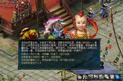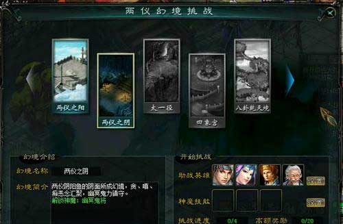 混沌初开盘古世,太极传下两仪来,四象无穷变化异,参透八卦归太一。吾师太上老君的法宝太极图变化莫测,玄妙无穷,其中幻境重重,收纳诸多神魔妖仙,可助各位英雄锤炼自我,提升修为。现如今太极图向各位英雄开放,英雄可进入两仪幻境一试身手,获得道法的进一步提升。