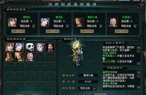 选择“我要邀请伙伴助我一臂之力”,选择助战英雄并设定战斗策略。挑战更多关卡可以解锁更多助战神魔,提升英雄的契合度可选择更多的作战方针。