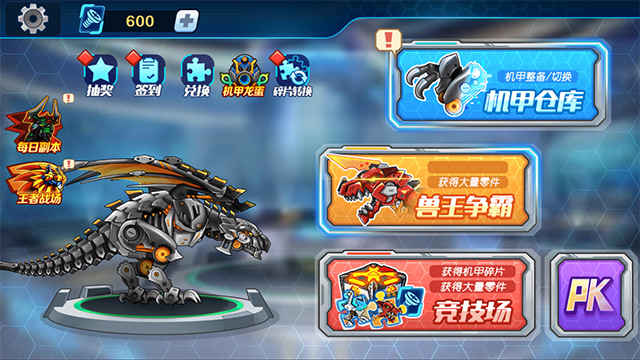 常规模式除了机甲仓库的机甲整备/切换以外,兽王争霸、竞技场将是玩家获取大量零件的重要途径,而且在竞技场PK对决中还有几率获得机甲碎片哦。