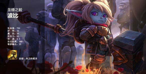技能介绍:持卫的裁决,波比砸下她的铁锤,来震开附近的敌人